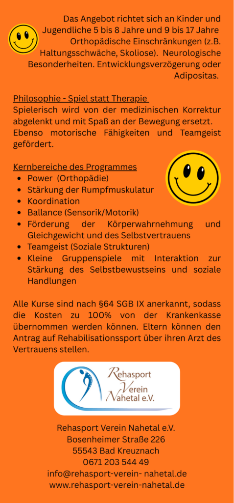 Wir sind ein seit November 2016 gegründeter Rehasport Verein. Unsere Sportstätte befindet sich in Bad Kreuznach, Bosenheimer Strasse 226.
